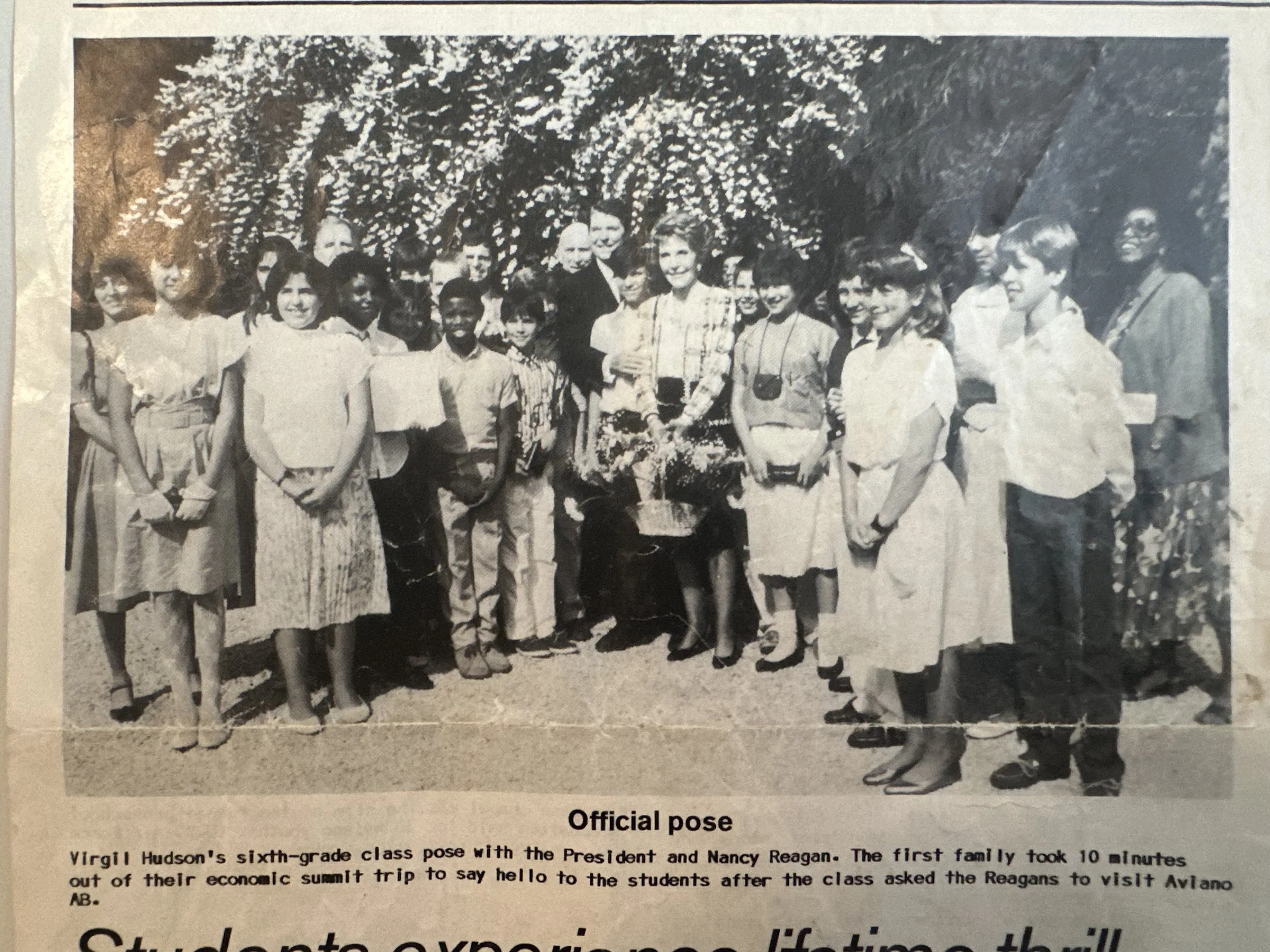 Sixth-grade class meets President and Nancy Reagan; Villa Condulmer, Italy 1987.